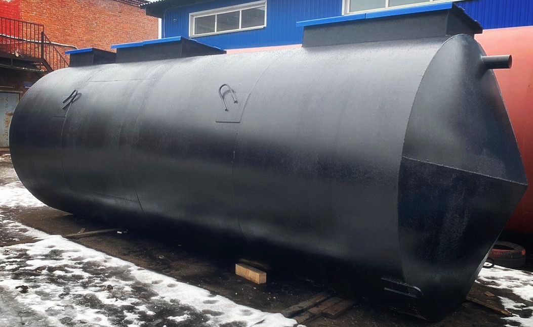 - Корпус изготовлен из низколегированной стали с многослойным антикоррозийным покрытием. Возможно изготовление из спирально-витого ПНД или стеклопластика.